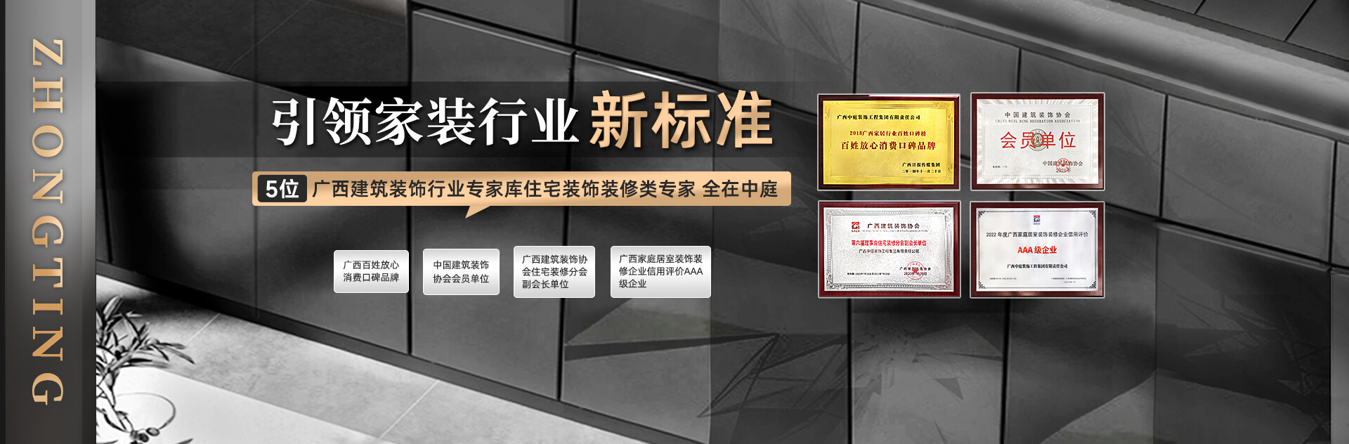 中庭裝飾,廣西品牌標桿裝企,廣西唯一5連A納稅企業(yè),深耕行業(yè)15年,秉持“品質筑家,服務至上”理念,為廣西超10萬家庭提供“設計、施工、選材、售后”等全鏈路家裝服務,客戶滿意度98%,凈推薦值83%。